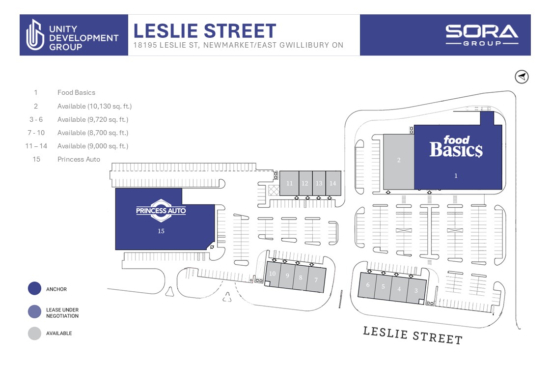 Strategically located in one of Newmarket’s fastest-growing commercial corridors, this retail development spans approximately 9.73 acres and will feature a total of 105,000 sq. ft. of retail space. Positioned just minutes from Highway 404, Green Lane East, and other major arterials, the site benefits from steady traffic flow along Leslie Street, a key commuter and retail corridor. The surrounding area combines established neighborhoods with new residential subdivisions, driving strong demand for retail and service amenities.
